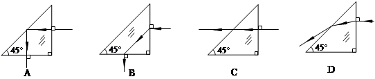 3、选择题 如图画的是光线由空气进入全反射玻璃棱镜、再由棱镜射入空气的光路图。指出哪种情况是可以发生的(? )