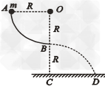 圆弧,半径为R,OA水平,OB竖直,O点离地面高度为2R,一质量为m的小球,从A点静止释放,不计空气阻力,最后落在距C点R处的D点。求: