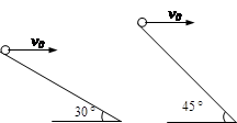 1、选择题 将两个完全相同的小球以相同的水平初速度分别从倾角为