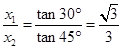 本题解析:两个小球均做平抛运动,根据斜面倾角的正切等于竖直位移与水平位移之比求出运动时间,求出水平距离,再求解水平距离之比.