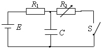 2、计算题  如图所示,电源电动势E=10V,其内阻不计。固定电阻的阻值R1=4Ω,可变电阻R2的阻值可在0~20Ω之间调节,电容器的电容C=30μF。求: