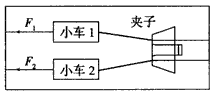 4、选择题 如图所示,在“探究加速度与力、质量的关系”的实验中,若1、2两个相同的小车所受拉力分别为F1、F2,车中所放砝码的质量分别为m1、m2,打开夹子后经过相同的时间两车的位移分别为x1、x2,则在实验误差允许的范围内,有