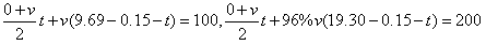 2、计算题  短跑名将博尔特在北京奥运会上创造了100m和200m短跑项目的新世界纪录,他的成绩分别是9.69s和19.30s。假定他在100m比赛时从发令到起跑的反应时间是0.15s,起跑后做匀加速运动,达到最大速率后做匀速运动。200m比赛时,反应时间及起跑后加速阶段的加速度和加速时间与100m比赛时相同,但由于弯道和体力等因素的影响,以后的平均速率只有跑100m时最大速率的96%。求: