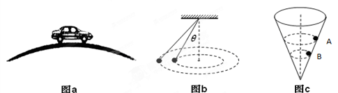 C.如图c,同一小球在光滑而固定的圆锥筒内的A、B位置先后分别做匀速度圆周运动,则在A、B两位置小球的角速度及所受筒壁的支持力大小相等