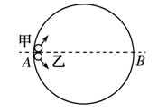 4、选择题 如图所示,一光滑圆环竖直放置,AB为其水平方向的直径,甲、乙两球以同样大小的初速度从A处出发,沿环内侧始终不脱离环运动到达B点,则( ) ?