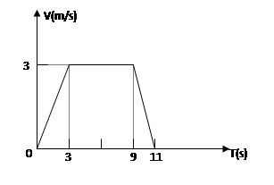 3、简答题 (6分)矿井里的升降机从静止开始做匀加速直线运动,上升3s,速度达到3m/s,然后匀速上升6s,最后减速上升2s停下,升降机上升的高度为________,在方框中画出升降机运动的v一t图像。