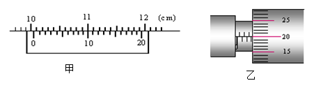 甲图中游标卡尺的读数是?cm。乙图中螺旋测微器的读数是?mm。