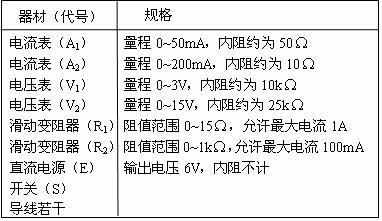 内阻不超过1Ω, 电压表(0---3V,3KΩ), 电流表(0---0.6A,1Ω), 滑动变阻器有R1(10Ω,2A)和R2(100Ω,0.1A)各一只. 实验电路如图(甲)