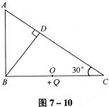 3、计算题 如图7—10所示,倾角为30°的直角三角形底边长为2L,底边处在水平位置,斜边为光滑绝缘导轨。现在底边中点O处固定一正电荷Q,让一个质量为m带正电的点电荷q从斜面顶端A沿斜边滑下,(整个运动过程中始终不脱离斜面)已测得它滑到斜边上的垂足D处时速度为v,加速度为a,方向沿斜面向下,试求该质点滑到斜边底端C点时的速度和加速度各为多大?