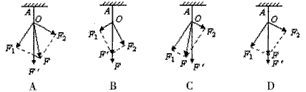 4、实验题 如图所示为四位同学在“验证力的平行四边形定则”的实验中所作的图示,F1和F2是两个弹簧秤同时拉橡皮条时的力的图示,F"是一个弹簧秤单独拉橡皮条时的力的图示,F是根据平行四边形定则作出的F1和F2的合力的图示,其中错误的一个图是______________。