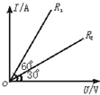 1、选择题 两电阻R1、R2的伏安特性曲线如图所示,由图可知( )