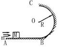 2、计算题  如图所示,ABC是光滑轨道,其中BC部分是半径为R的竖直放置的半圆.一质量为M的小木块放在轨道水平部分,木块被水平飞来的质量为m的子弹射中,并滞留在木块中.若被击中的木块沿轨道能滑到最高点C,已知木块对C点的压力大小为(M+m)g,求:子弹射入木块前瞬间速度的大小.