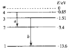 2、选择题 如图所示为氢原子的能级图。当氢原予从n=4能级跃迁到n=2能级时,辐射出光子a;当氢原子从n=3能级跃迁到n=1能级时,辐射出光子b,则下列说法中正确的是(?)