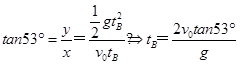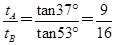 4、选择题 如图所示的两个斜面,倾角分别为37°和53°,在顶点两个小球A、B以同样大小的初速度分别向左、向右水平抛出,小球都落在斜面上,若不计空气阻力,则A、B两个小球平抛运动时间之比为( )