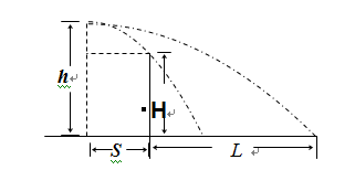 5、计算题 如图,已知排球网高H,半场长L,扣球点高h,扣球点离网水平距离s、求水平扣球速度的取值范围。
