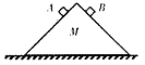 3、选择题 如图所示,一个纵截面是等腰三角形的斜面体M置于水平地面上,它的底面粗糙,两斜面光滑。将质量不相等的A、B两个小滑(mA>mB)同时从斜面上同一高度处静止释放,在两滑块滑至斜面底端的过程中,M始终保持静止,则