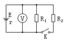 2、选择题 如图示的电路中,电源内阻r=1Ω,R1=R2=2Ω,当电键K断开时,理想电压表的示数为2.0V,则当电键K闭合时,电压表的示数为多少?