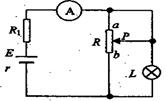 1、计算题 如图所示,电阻R1 = 2Ω,小灯泡L上标有“3V,1.5W”(灯泡的电阻不随温度变化),电源内阻r = 1Ω,滑动变阻器的最大阻值为R0(大小未知).当触头P滑动到最上端 a时, 安培表的读数为l A(其电阻不计),小灯泡L恰好正常发光,求: