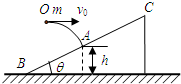 1、选择题 质量为m的小球以v0的水平初速度从O点抛出后,恰好击中倾角为θ的斜面上的A点.如果A点距斜面底边(即水平地面)的高度为h,小球到达A点时的速度方向恰好与斜面垂直,如图,则以下正确的叙述为( )