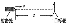 4、计算题 如图所示,玩具射击枪水平放置,玩具枪与目标靶中心位于离地面足够高的同一水平线上,枪口与目标靶中心之间的水平距离s="5" m,子弹射出的水平初速度v为10 m/s,不计空气阻力,重力加速度g为10 m/s2,(靶足够大)求: