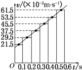 (2)由图中的x轴作为时间轴,以纸带的宽度表示相等的时间间隔T=0.1s,每段纸带最上端中点对应v轴上的速度恰好表示每段时间的中间时刻的瞬时速度,即vn=ynT;因此可以用纸带的长度表示每小段时间中间时刻的瞬时速度,将纸带上端中间各点连接起来,可得到v-t图象,如图所示.