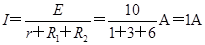 1、计算题  (10分) 如图所示,电源电动势E=10 V,内阻r=1 Ω,R1=3 Ω,R2=6 Ω,C=30 μF.