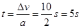 可得汽车经过2s后的速度大小为 ,汽车停止时间为5s,所以经过10s后的速度大小为0