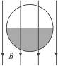 5、简答题 一个圆柱形玻璃管里面刚好装了半管水银,水银质量为m,玻璃管水平固定在竖直向下的匀强磁场中,磁感应强度为B,如图11-28所示为玻璃管的截面图.如有电流I通过水银向纸内方向流过,当水银面再次平衡时,测得水银面上表面与竖直方向的夹角为α.求此时水银受到的安培力及玻璃管对水银的支持力.