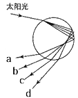 雨后太阳光入射到水滴中发生色散而形成彩虹。设水滴是球形的,图中的圆代表水滴过球心的截面,入射光线在过此截面的平面内,a、b、c、d代表四条不同颜色的出射光线,则它们可能依次是( ? )