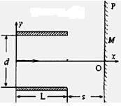 2、计算题 (10分)如图所示,水平放置的两块平行金属板长L=5cm,两板间距d=1cm,两板间电压U=91V不变,上板带正电。距离极板右端s=10cm处有一接收屏,各种速度的电子沿水平方向从两板中央射入。电子的质量