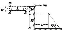 2、简答题  如图所示,顺时针以4.0m/s匀速转动的水平传送带的两个皮带轮的圆心分别为A、B,右端与等高的光滑水平平台恰好接触。一小物块m(可看成质点)从A点正上方轻放于传送带上,小物块与传送带间动摩擦因数μ=0.3,最后从光滑水平平台上滑出,恰好落在临近平台的一倾角为 α= 53°的光滑斜面顶端,并刚好沿光滑斜面下滑,已知斜面顶端与平台的高度差h=0.8m,g = 10m/s2,sin53° = 0.8,cos53° = 0.6,则 ?(1)小物块水平抛出的初速度v0是多少?