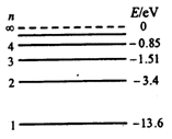 1、计算题 (1)(6分)氢原子的能级如图所示。氢原子从n=3能级向n=l能级跃迁所放出的光子,恰能使某种金属产生光电效应,则该金属的截止频率为____Hz;用一群处n=4能级的氢原子向低能级跃迁时所发出的光照射该金属,产生的光电子最大初动能为____ eV(普朗克常量h=6.63×10-34J"·s,结果均保留2位有效数字)。