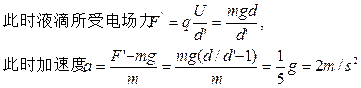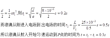 (2)因液滴刚好从金属末端飞出,所以液滴在竖直方向上的位移是d/2,