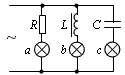 3、选择题 如图所示,三只完全相同的灯泡a、b、c分别与电阻R、电感L、电容C串联,再将三者并联,接在220V,50Hz的交变电压两端,三只灯泡亮度相同。若将交变电压改为220V,25Hz,则(? )
