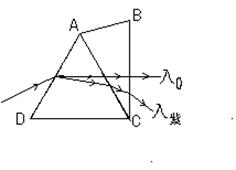 ∵n1(紫)>n2(紫)∴对紫光而言在AC面上是从光密介质射向光疏介质,故折射角大于入射角,如图。