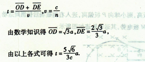 答:从C点射出的单色光由O到C的传播时间tC为t.