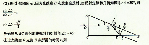 ②光在棱镜中传播的时间(设光在真空中传播速度为c)