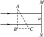 2、填空题 如图所示,MN是暗室墙上的一把直尺,一束宽度为a的平行白光垂直射向MN.现将一横截面是直角三角形(顶角A为30°)的玻璃三棱镜放在图中虚线位置,且使其截面的直角边AB与MN平行,则放上三棱镜后,射到直尺上的光将(? )