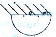 1、计算题 一束平行光线在垂直于玻璃半圆柱体轴线的平面内,按如图所示的方向射到半圆柱的平面上,已知光线与上表面的夹角为45°,求在半圆柱体的圆表面上有光线射出部分的弧长是多少?(已知玻璃半圆柱体的半径为0.2m,玻璃的折射率为