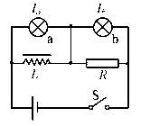 5、选择题 如图所示,a、b是两个相同的小灯泡. 灯泡电阻为r,r>R.L是一个自感系数相当大的线圈,它的电阻跟R相等.由于自感现象,开关S接通和断开时,下列说法中正确的是
