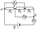 由于三个电流表都是理想电流表,即电流表的内阻都可忽略不计,电流表的两端电势相等,即a与c等电势、b与d等电势.从而三个电阻是并联关系,电流之比IR1:IR2:IR3=