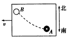5、选择题 如图所示(俯视图),以速度v匀速行驶的列车车厢中有一光滑水平桌面,桌面上的A处有一小球。若车厢中的旅客突然发现小球沿图中虚线由A向B运动,则由此可判断列车