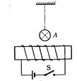 2、选择题  如图,均匀绕制的螺线管水平放置,在其正中心的上方附近用绝缘绳水平吊起通电直导线A,A与螺线管垂直,A导线中的电流方向垂直纸面向里,开关S闭合,A受到通电螺线管磁场的作用力的方向是(?)
