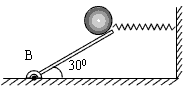 2、选择题 如图所示,用倾角为30°的光滑木板AB托住质量为m的小球,小球用轻弹簧系住,当小球处于静止状态时,弹簧恰好水平。则当木板AB突然向下撤离的瞬间