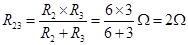 (2)若在C、D间连一个理想电流表,这时电阻R2与R3并联,并联电阻大小