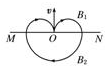 2、填空题 如图所示,MN为两个匀强磁场的分界面,两磁场的磁感应强度大小为B1=2B,B2=B。一电荷量为+q、质量为m的粒子从O点垂直MN进入磁感应强度为B1的磁场,则经过____________时间它将向下再一次通过O点,这段时间内粒子的平均速度为_________。