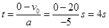 ,停车后速度v=0,根据匀变速直线运动的速度时间关系