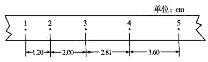 (2)(4分)用电磁打点计时器记录一小车做匀变速直线运动的纸带,如图所示。图中1、2、3、4、5是每隔0.1s所取的计数点,由实验数据可知,小车运动的加速度大小为 m/s2,小车通过计数点2的瞬时速率为 m/s。