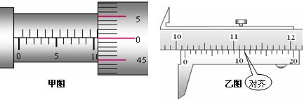 (1)(4分)如图所示,甲图中螺旋测微器的读数为 mm,乙图中游标卡尺(游标尺规格为20分度)的读数为 cm.