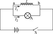 3、选择题 如图所示为演示自感现象实验的电路,实验时先闭合开关S,稳定后设通过线圈L的电流为I1,通过小灯泡A的电流为I2,小灯泡处于正常发光状态,迅速断开开关S,则可观察到灯泡A闪亮一下后熄灭,在灯泡A闪亮的短暂过程中,下列说法正确的是